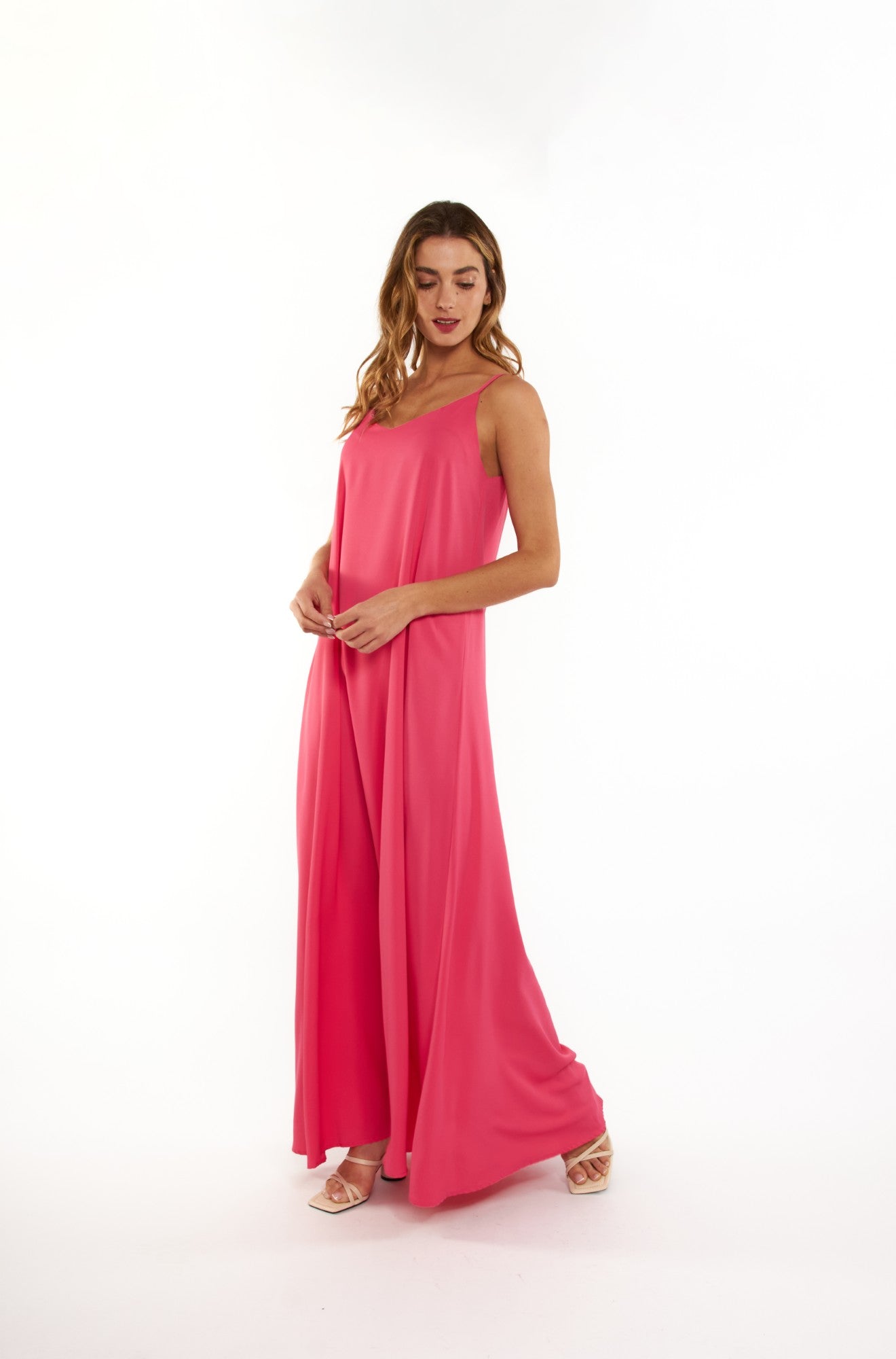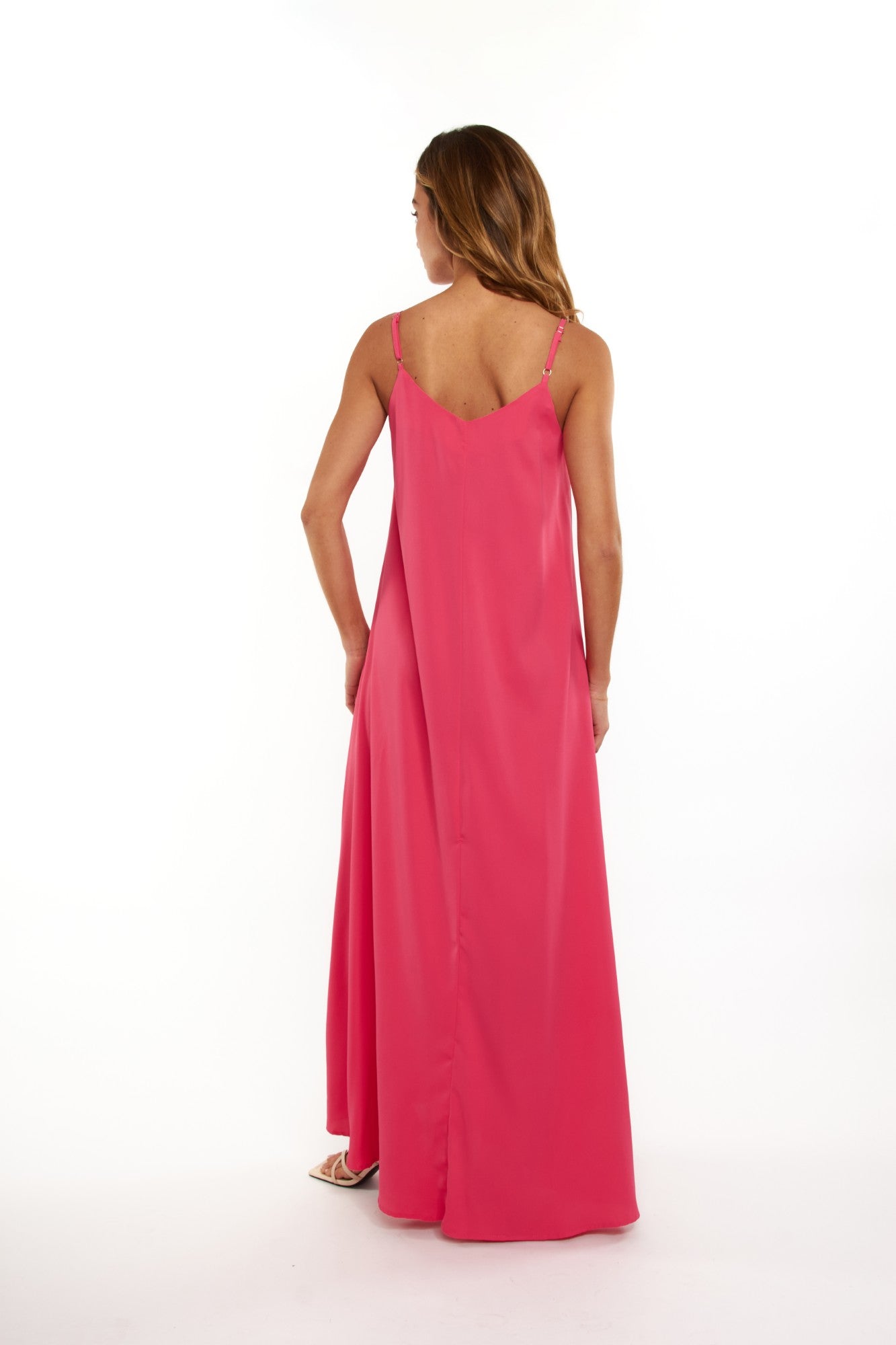 Maxi vestido holgado con tirantes ajustables diseñado para la comodidad y el estilo durante la primavera y verano. Este versátil diseño te permite lucir elegante en cualquier ocasión, desde paseos casuales hasta eventos especiales. Los tirantes regulables se adaptan perfectamente a tu cuerpo, garantizando un ajuste personalizado que favorece tu silueta. Disponible en cuatro tonos cautivadores—negro clásico, azulino refrescante, fucsia vibrante y camel sofisticado—encontrarás la opción ideal para complementar tu guardarropa. Confeccionado con telas de calidad que respiran con el calor, este maxi vestido es tu aliado perfecto para mantenerte fresca y radiante toda la temporada.